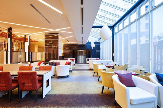 JR・近鉄 京都駅南口(八条口)から徒歩2~3分、都ホテル 京都八条の本館1階にあるしっとりとした落ち着きのあるスペースです。