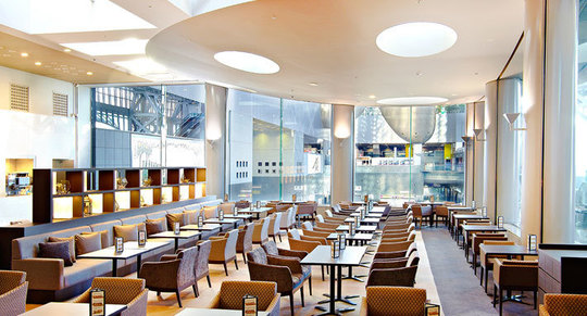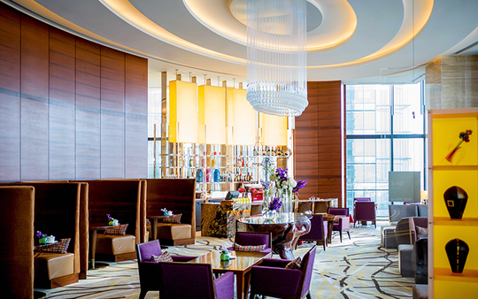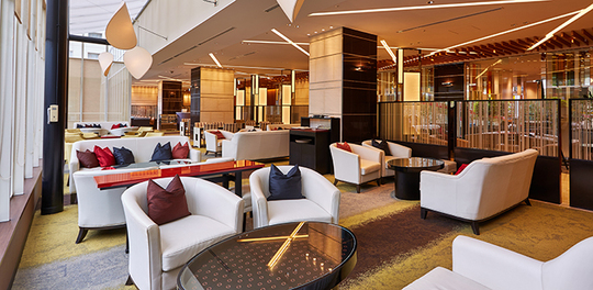 JR大阪駅から徒歩10分のグランフロント北館にある大阪インターコンチネンタルホテル20階フロント横に位置し、天地に広がる大きな窓から望む大阪市街の景色が印象的な、居心地の良いラウンジです。